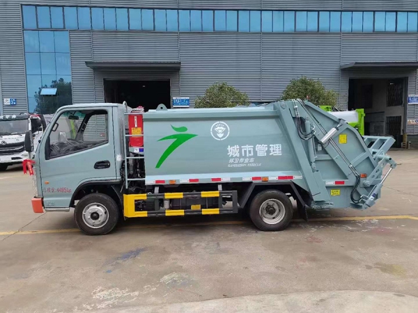 (3)油泵采用国内知名品牌安徽皖液油泵,加装压实阀,增加压缩密度、提高装载量。装载量相当于同吨级排非压缩垃圾的两倍半。威森博乐多路阀,徐州全球通液压油钢管,多路阀处硬链接,整齐美观,散热快,工作效率高,采用**的外置油缸结构和双向压缩技术,通过国内国外一流品牌配件,实现压缩比超过